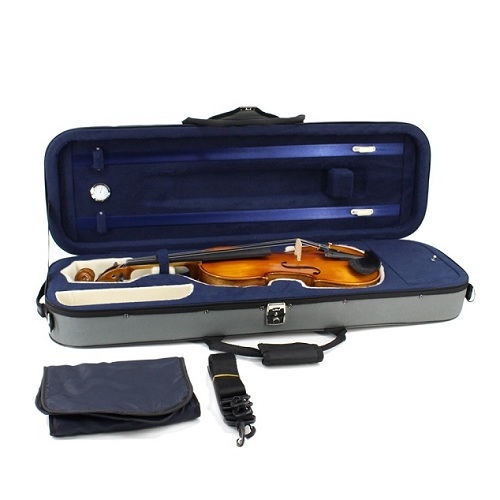 Black Gray & Blue Stitching Canvas Rectangle Violin Case Large Storage Space w/ Hygrometer Straps for 4/4 3/4 1/2 1/4 1/8 Violin